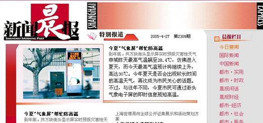 报道一:正伟气象预警系统产品获得CCTV报道、上海《新闻晨报》、《东方早报》等发行量最大的几家新闻报刊好评: